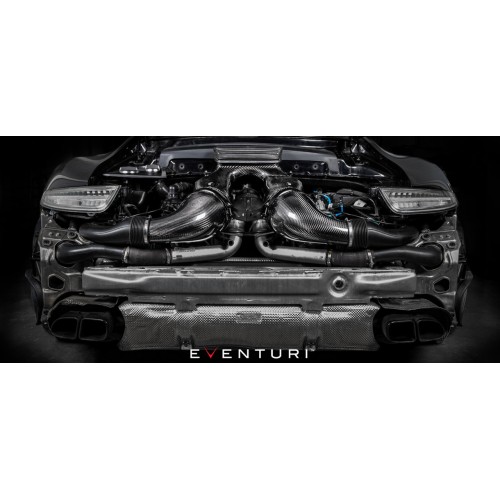 The 911 Turbo Eventuri system uses our Patented Carbon Fibre Housings with our Gen 2 bespoke filters, which provide an aerodynamically efficient airflow path from the filter to the turbos. Not just another cone filter with a heat shield but a unique design which invokes the Venturi affect and maintains laminar flow conditions to reduce the drag on the turbo.